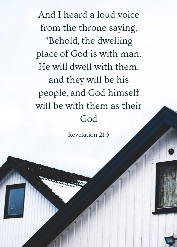 And I heard a loud voice from the throne saying, “Behold, the dwelling place of God is with man. He will dwell with them, and they will be his people, and God himself will be with them as their God. Revelation 21:3